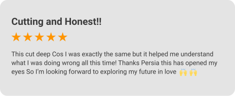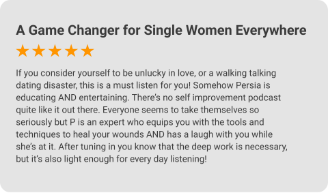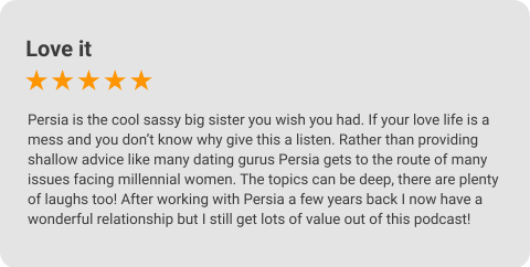 “Refreshingly honest, raw and relatable, Persia really knows her stuff when it comes to dating and relationships and is trailblazing a path for those ready to learn how to find and nurture real, soulful love.”